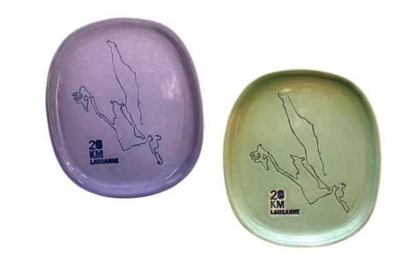 À l’occasion des 20 km de Lausanne, l’atelier poterie a réalisé des plats en céramique spécialement conçu pour l’événement. La gravure représente le parcours de la course et intègre un tampon inspiré du logo officiel.