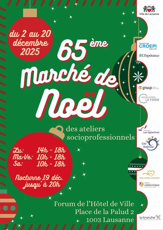 🎄Le Graap participe au Marché de Noël des ateliers socioprofessionnels, organisé au Forum de l’Hôtel de Ville à Lausanne, du 2 au 20 décembre 2025.